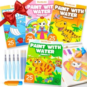 ASINなし Amazon取得エラー- 商品名 : Shuttle Art 水彩塗り絵 子供用水彩絵本 4種類 画用紙計100枚 厚手 120gsm 水筆ペン5本 絵筆4本 補充絵の具シート4枚付き 鮮やか 透明 速乾 耐久 キッズお絵描き