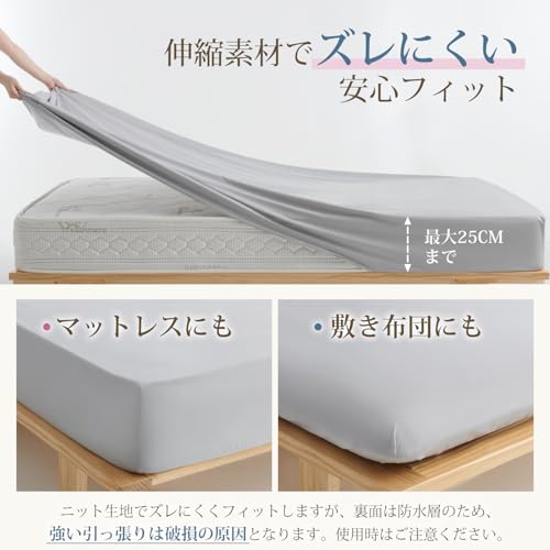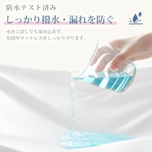 - 「軽量&速乾でお手入れ簡単」軽くて扱いやすく、洗濯後も一般的な防水シーツに比べて速乾性に優れ、常に清潔に使えます。さらに全周ゴム仕様で取り付け・取り外しも簡単。厚さ25cmまでのマットレスや敷き布団に対応し、日常使いに便利です。