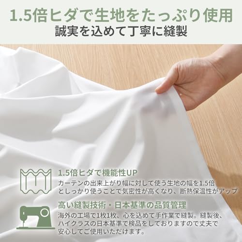 - 【高品質仕様と仕立て】ポリエステル100%の上質な生地を使用し、ミラー効果/UVカット/遮熱保温/ウォッシャブル機能を備えています。1.5倍ヒダの2ッ山仕立てで美しいドレープを実現。届いてすぐ使えるアジャスターフック付きで、取り付けも簡単です。
