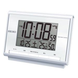 ASINなし Amazon取得エラー- 商品名 : セイコークロック(Seiko Clock) 目覚まし時計 置き時計 電波 デジタル カレンダー 温度 湿度 白パール 85×120×48mm B