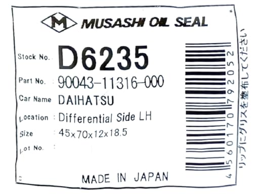 武蔵オイルシール 軽自動車用オイルシール D6235のJANコードは【4560170792052】です