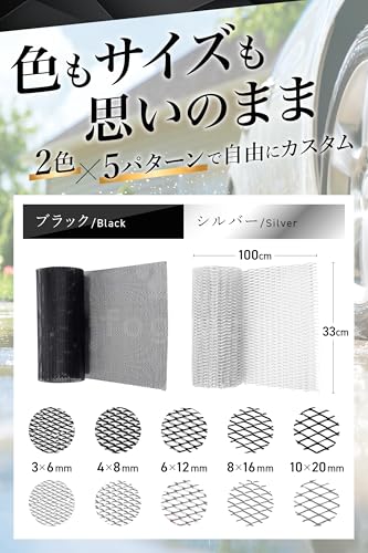 - 商品名 : fogman フロントグリル ネット メッシュ 車 アルミ カスタム 汎用 網目幅3 x 6mm-10 x 20mm (ブラック, 6 x 12mm)