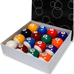 - 【商品詳細】世界ビリヤードスポーツ連合および、日本ビリヤード協会(NBA) にて定められている国際競技規定に適用したサイズです。フルセットのためナインボール、ベーシックゲーム、エイトボール等の全てゲームに対応可能です。