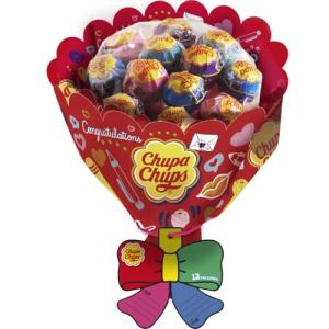- プレゼントにピッタリなチュッパチャプスフラワーブーケ。チュッパチャプス ザ・ベスト・オブ・フレーバーで人気のコーラ、ラムネ、ストロベリークリーム、グレープの4種がアソート。貰うと思わず笑顔になる可愛いデザインでラッピング。