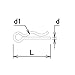 - (呼び径d1)4mm。(長さL)16.3mm。(太さd)1.0mm。(適用軸)1.2mm。(材質)SUS304。(表面処理)なし。(入数)10個。
