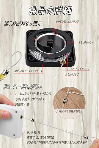 - 【強い引張力】自動ドアクローザーは、穴のない接着剤の取り付けで、しっかりしていて、壁を傷つけず、簡単に取り付けられ、耐熱性があります。鋼線ロープは5万回の引張試験・反発試験に合格し、強い引張力を持っています。