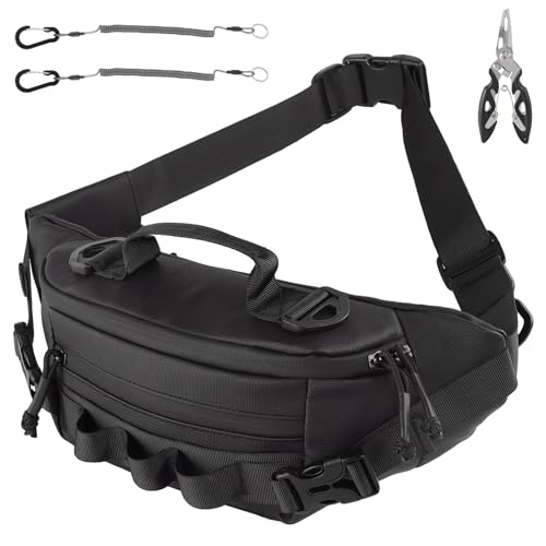 VARMHUS 渓流釣り用バッグ ウエストポーチ 多機能 ウエストバッグ 大容量釣り バッグ ショルダーバッグ 肩掛けバッグ ボディバッグ ヒップバッグ 防水 ブラック