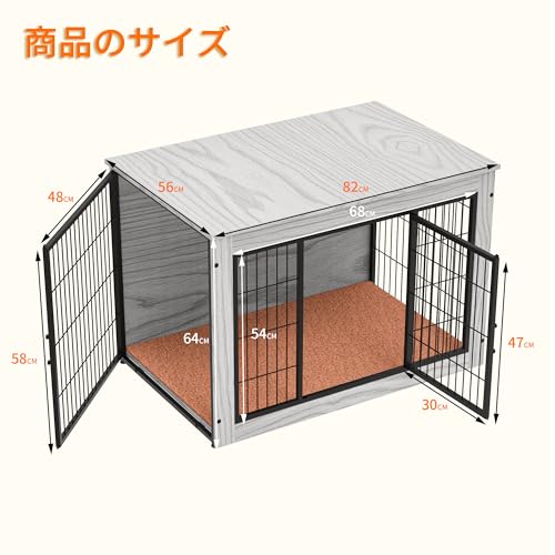 - 商品名 : Petnniko 犬 ケージ ペットケージ 犬 サークル 小中大型犬用 幅82×奥行56×高さ64cm 屋根付き 室内 毛布付き 木製 耐荷重100kg 掃除しやすい 二つのドア 丈夫 頑丈 安定感高い オシャレ 犬 ゲージ ペットゲージ グレー (グレー, M)