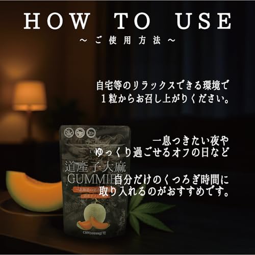 - 商品名 : [北海道の恵みを凝縮] 道産子大麻 グミ CBN 高濃度2000mg 1粒200mg 10粒入 道産子メロン味 エディブル cbn cbd 合法グミ LHS
