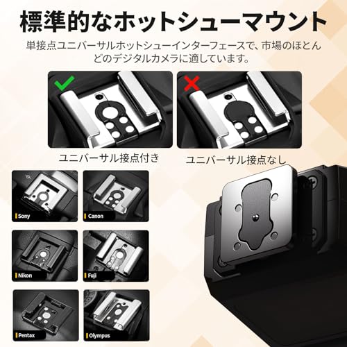 - 【ポケットサイズ】:6.8*4.3*2.3cm、わずか43gの重量で、従来の大型フラッシュとは異なり、ポケットに簡単に収まるか、カメラに取り付けることができ、どんな撮影条件でも持ち運びやすい完璧なアクセサリーです。※機器のショートを避けるため、フラッシュとカメラの電源を入れる前に機器を取り付けてください。