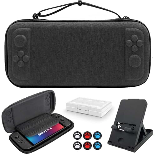 【Switch2 ケース 超薄型】スイッチ2 ケース+3段階調整スタンド+スティックキャップ 12枚ゲームカードスロット Switch 2 case 高密度EVA防水 収納バッグ 大容量 耐衝撃 防塵 全面保護 持ち運び 旅行用